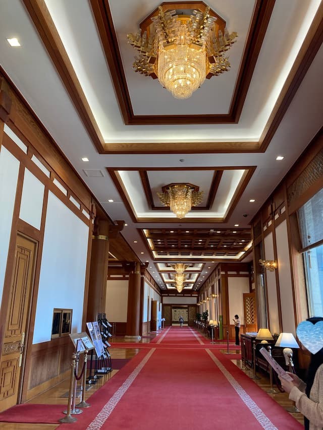 廊下のシャンデリアが素晴らしい。